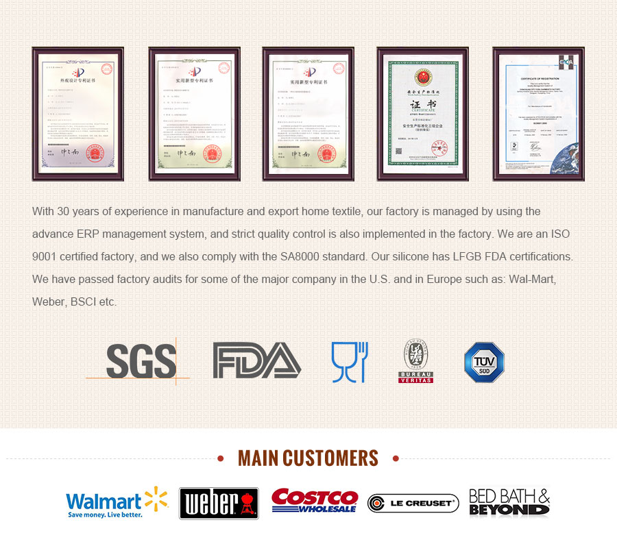 | Certifications | FDA, SGS, LFGB, BV, TUV |